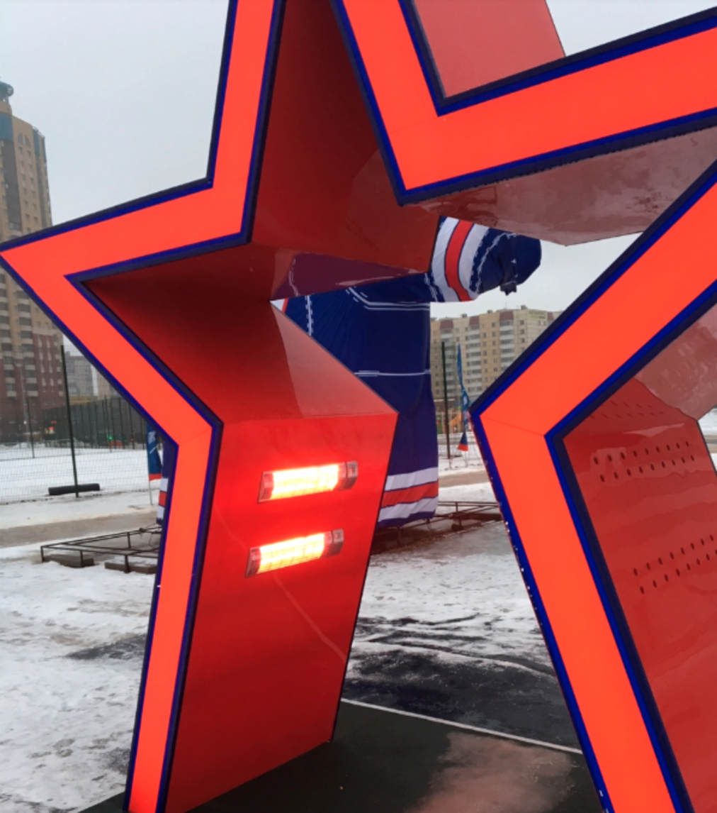 Нестандартная имиджевая конструкция к 70-летию клуба. Кроме демонстрации нестандартного брендинга, Звезда фактически могла согревать прохожих теплом и любовью.